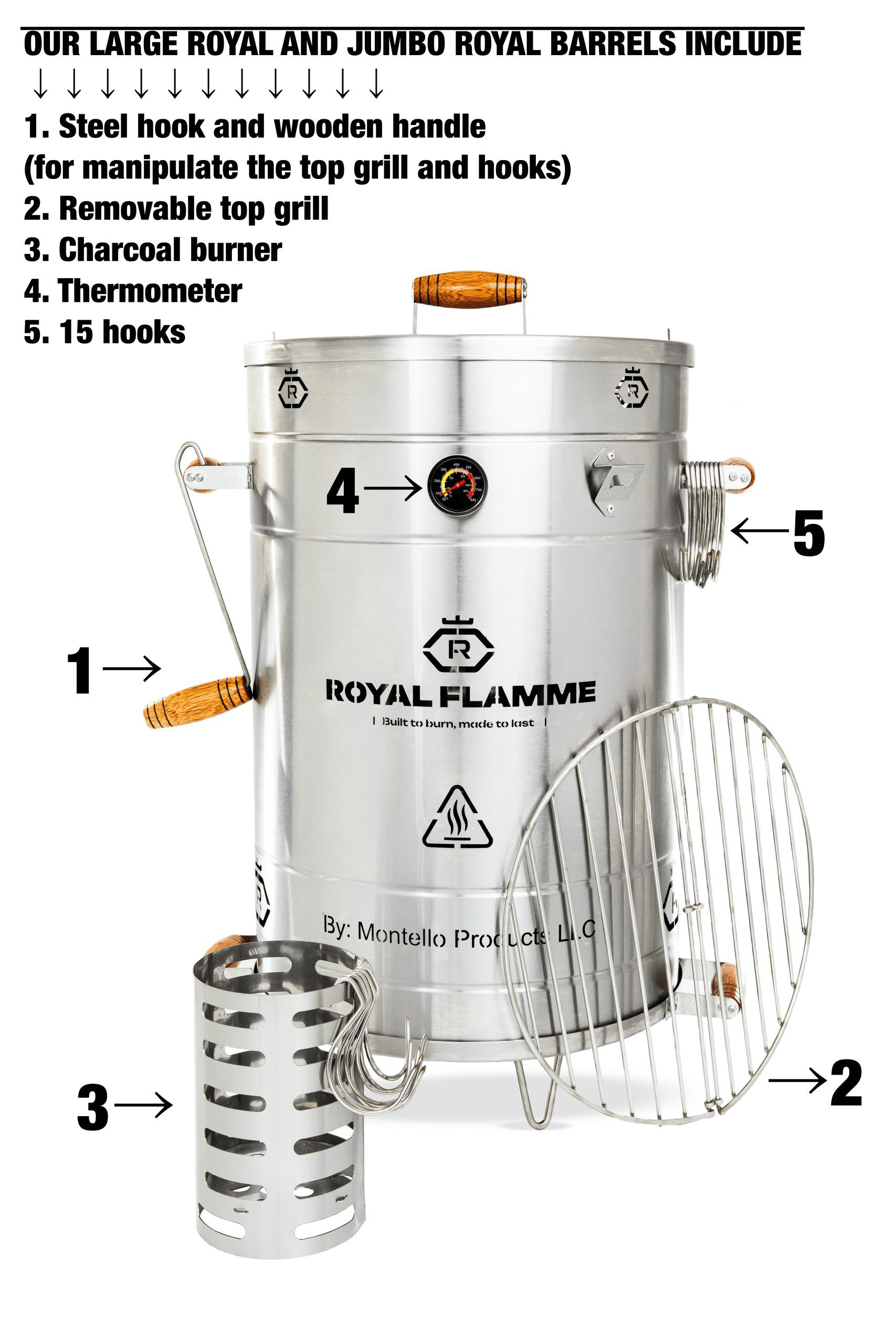 The Royal Jumbo Barrel Grill is the largest model—ideal for events, catering, or professional BBQ use.
